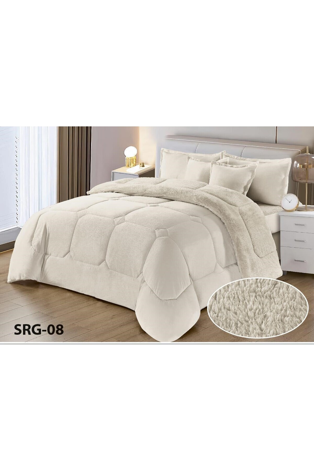 طقم مفرش نفر 4 قطع شتوي حشوة وسط مخمل ناعم مع فرو سادة ذو وجهين خامة مخمل فخم لحاف مقاس 210*170